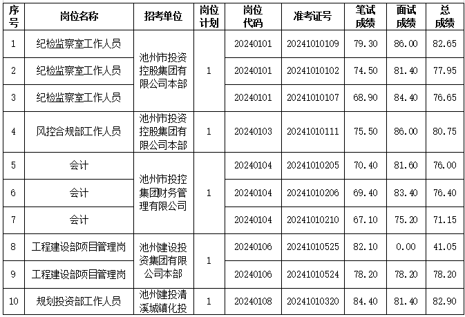 根據(jù)《池州市投資控股集團(tuán)2024年下半年公開招聘工作人員公告》要求,下半年公開招聘面試工作已結(jié)束,現(xiàn)將相關(guān)事宜公告如下。
