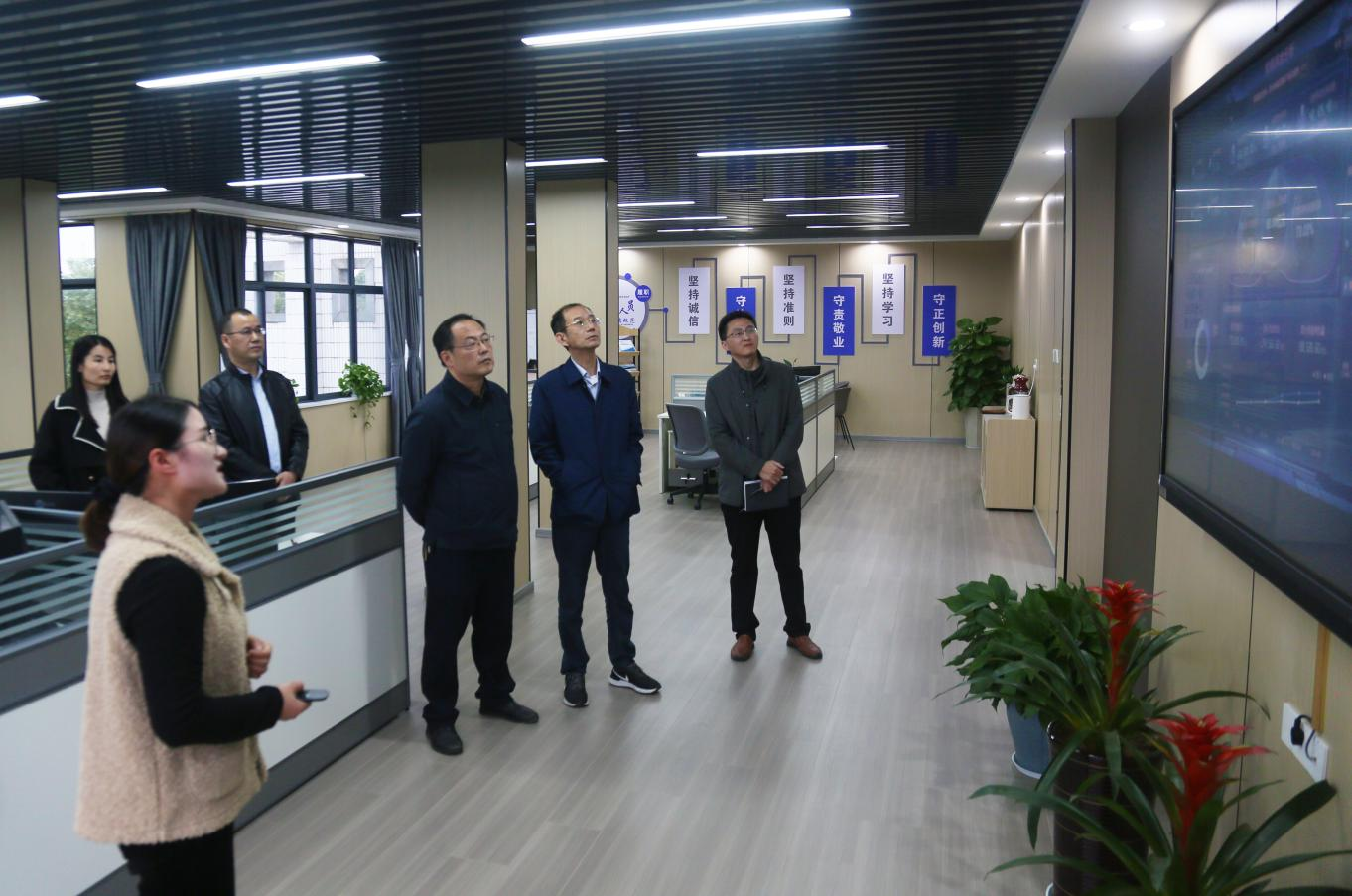 隨后,汪偉一行來到辦公大廳觀看智能運(yùn)營分析大屏及財(cái)務(wù)RPA機(jī)器人自動對賬演示,了解了財(cái)務(wù)共享運(yùn)營在線監(jiān)測、財(cái)務(wù)綜合分析、預(yù)算指標(biāo)實(shí)時(shí)監(jiān)控等情況。