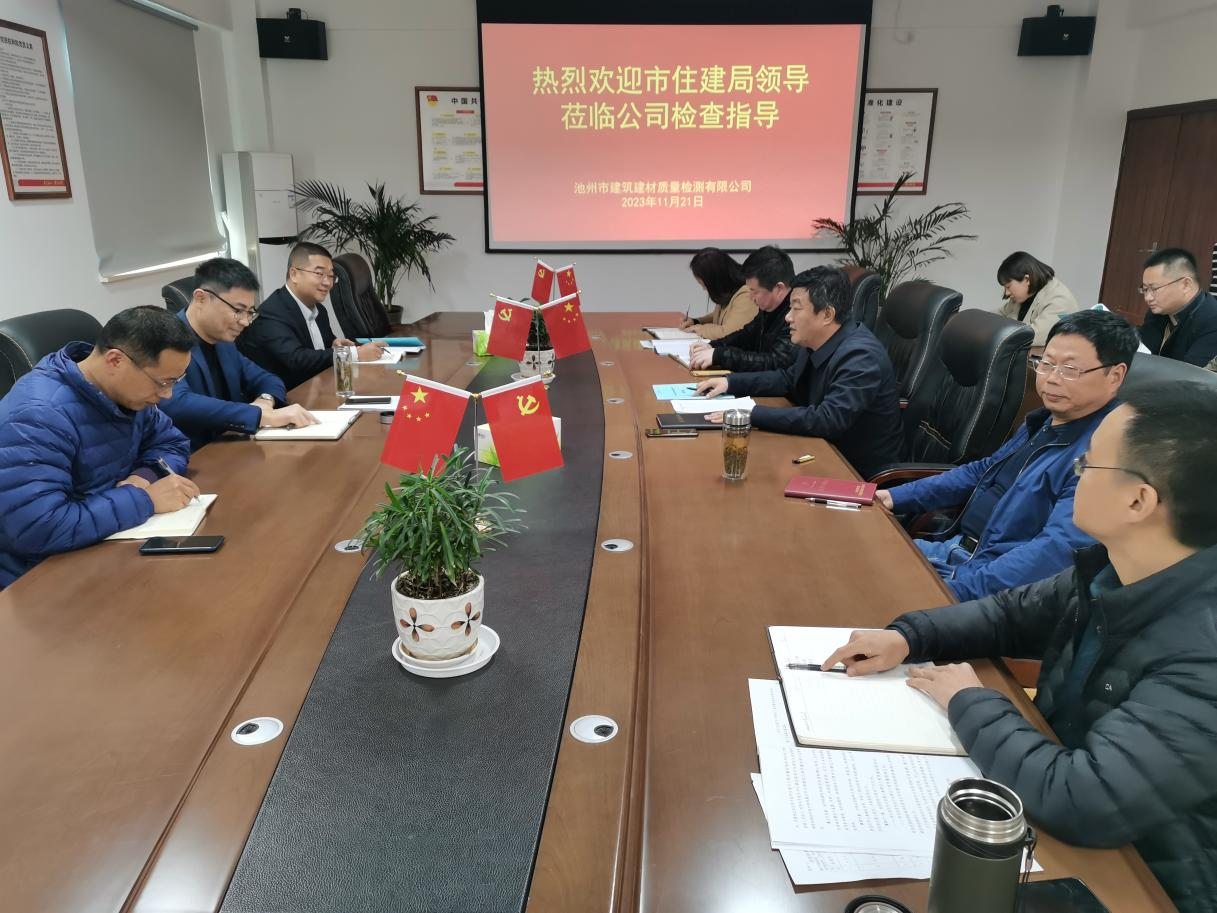 11月21日下午,市住建局副局長洪磊一行蒞臨池州市建筑建材質(zhì)量檢測有限公司開展調(diào)研,檢測公司領導班子陪同調(diào)研。