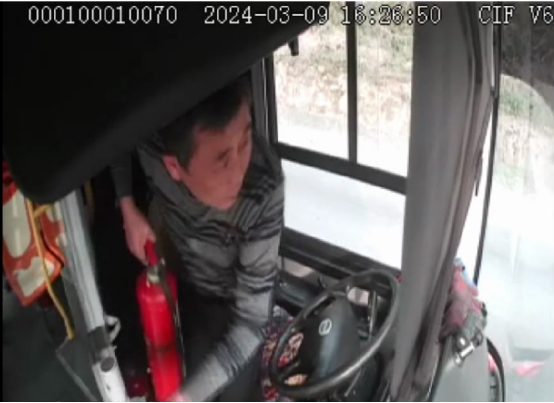 他立即將車輛安全??吭诼愤叄杆俳忾_安全帶,提起身邊的滅火器奔向著火車輛。利用日常掌握的消防滅火知識,準確找到起火位置,對準火焰根部進行噴射,火勢很快得到了控制。為防止火勢復燃,他又即刻返回車上,拿起水桶對準車輛著火點進行二次覆滅。在確保險情徹底消除后,他才放心返回車上繼續(xù)執(zhí)行營運任務。整個救援過程,短短幾分鐘,規(guī)范、準確、快速、高效,及時消除了火災事故。
